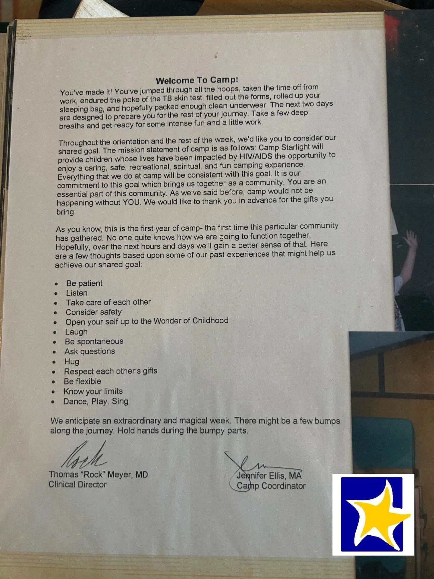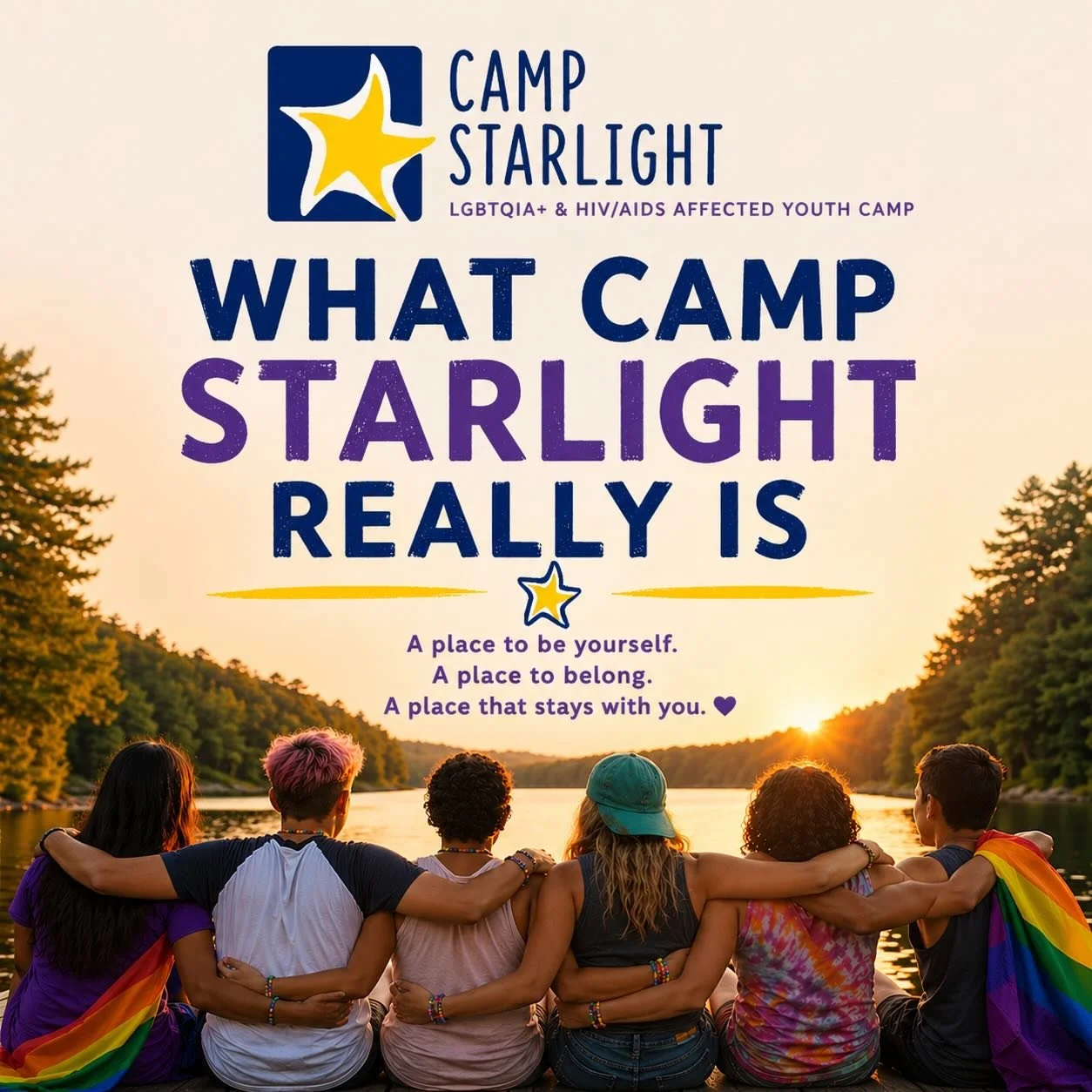 Camp Starlight provides a caring, safe, recreational, and fun camping experience for children whose lives have been affected by HIV/AIDS and/or the stigma against the LGBTQIA+ community.